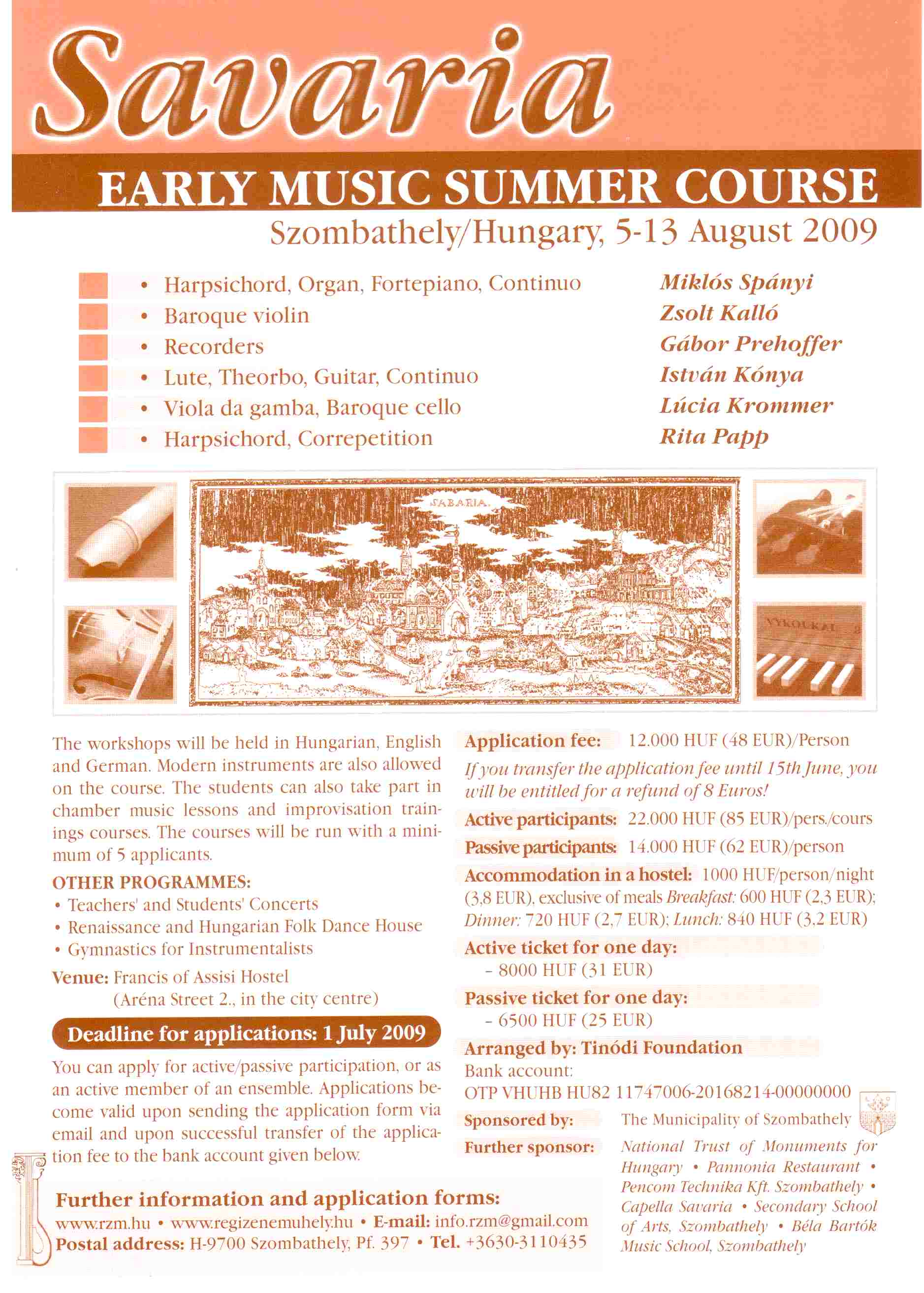 Şcoală de vară de muzică veche în Ungaria, la Szombhately, 5-13 August 2009