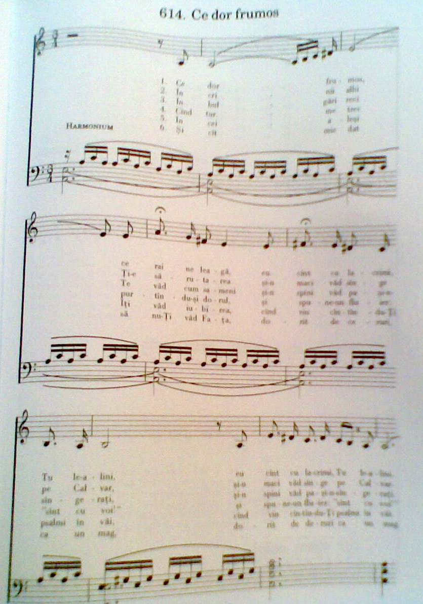 Mă plîngeam zilele trecute că noi evanghelicii am renunţat la filonul tradiţional românesc în ceea ce priveşte melosul şi fie traducem şi transferăm nereuşit, fie compunem nişte melodii care nu merg în linia melodică decît în interiorul unei cvarte, cvintă maxim. Previzibil: tonica, dominantă, subdominantă.