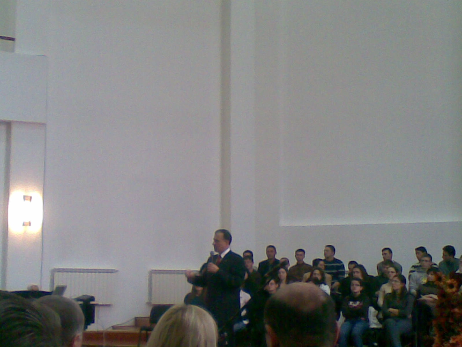 După ce a evocat perioada americană, circa 5-7 minute (aici se ridică pentru mine cîteva întrebări….există încă percepția din partea politicienilor români că baptiștii sînt atît de apropiați de Statele Unite, proamericani, pro-Obama? nume care a fost pomenit de vreo două ori în discursul domnului Geoană), după evocarea perioadei americane, începînd cu prima zi de misiune, a urmat un moment în care a descris criza în care se află societatea românească: Mare este secerișul, puțini sînt lucrătorii, sîntem un neam bogat în resurse umane, dar nu prețuim oamenii. Aici trebuie să îi felicit pe consilierii domnului Geoană, care l-au sfătuit să citeze din Biblie într-un asemenea mediu. Din acel moment pentru unii s-a produs anestezia ideologică: gata, el e cel ales… De asemenea, a menționat că a fost la micul dejun de rugăciune al Casei Albe și că a inițiat un grup de rugăciune al ambasadorilor.