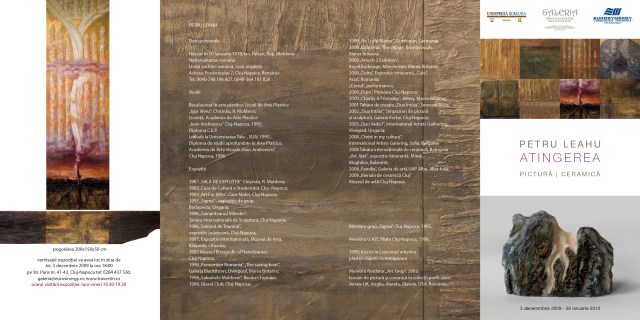 Joi, 3 decembrie, la ora 18.00, are loc vernisajul expoziției Petru Leahu. Expoziția va fi deschisă între 3 decembrie 2009 – 26 ianuarie 2010. Orele de vizitare: 10:30 – 19:30. Locația: Str. Paris 41-43.