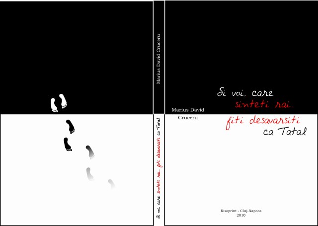 Ca proaspat absolvent de Arte, din cele prezentate, nu pot sa vad alta varianta decat 1. Are claritate si impact. Un joc simplu alb-negru impreuna cu un tandem al versetelor. O mica observatie: pasii de pe spate poate ar trebui un pic lucrati. Gradient-ul nu pica tare bine cu tema „hand made”. Ar merge un stil desenat, mai degraba decat pierduti perfect uniform.