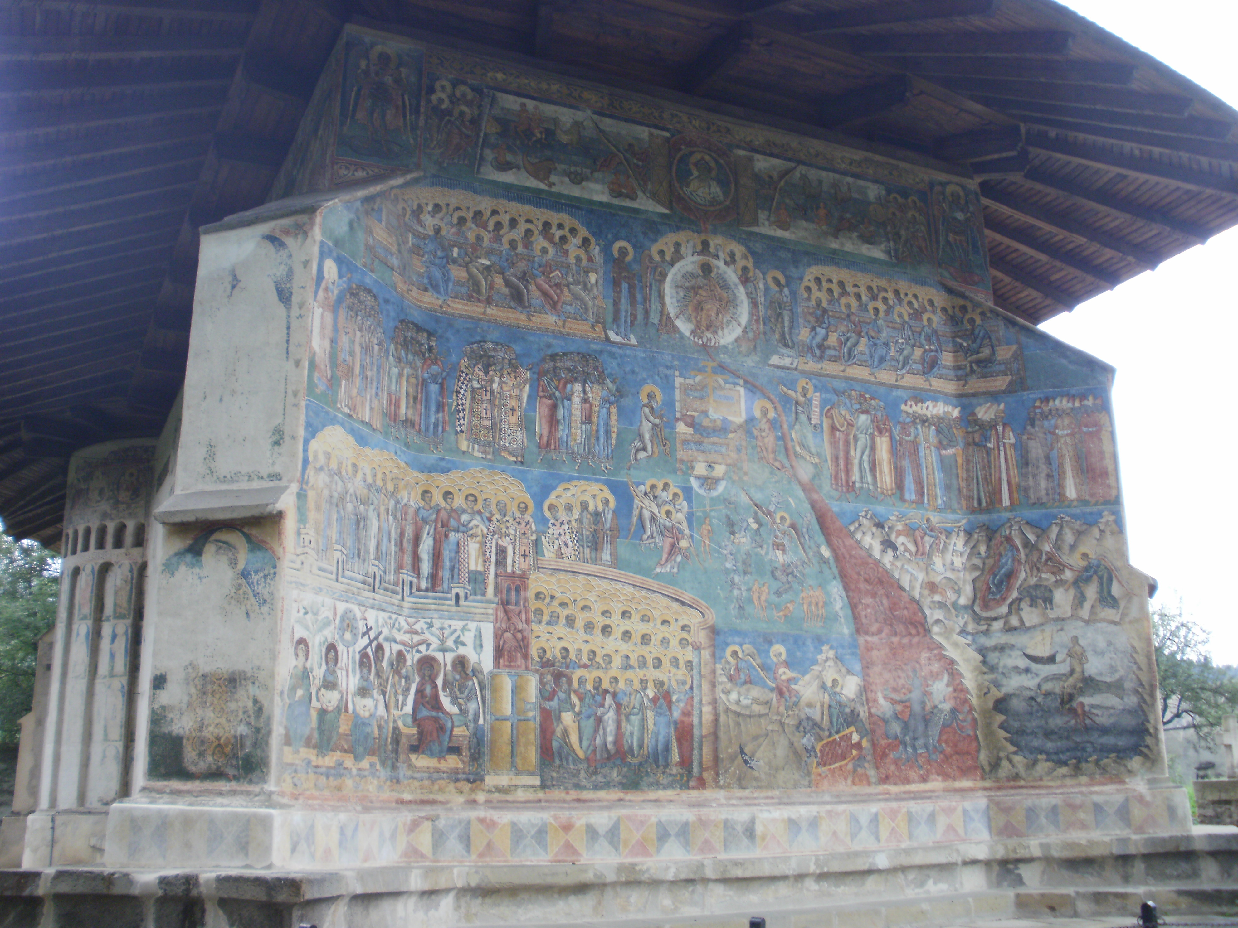 nu vad de ce n-ai putea ilustra insemnarea cu una din picturile la care te referi, de pe manastirile din nordul Moldovei. am eu o poza proaspata de la Moldovita, aici: http://uglybadbear.files.wordpress.com/2010/10/10-07-540.jpg