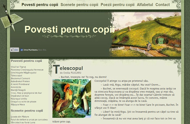 Anume de asta a apărut „Poveşti Pentru Copii” – pentru a aduce frumosul în copilăria celor mici şi pentru ai face pe aceştia să vadă în culori mai calde lumea din care fac parte. E o colecţie interesantă de lucrări literare printre care basme şi povestiri pentru copii, scenete pentru elevi sau poezii pentru toţi. Iar recent a fost adaugat şi alfabetul român în poezioare şi desene. Fiecărei litere îi corespunde un desen şi o poezioară pentru a-i ajuta pe cei mici să pornească mai uşor pe calea lecturii.