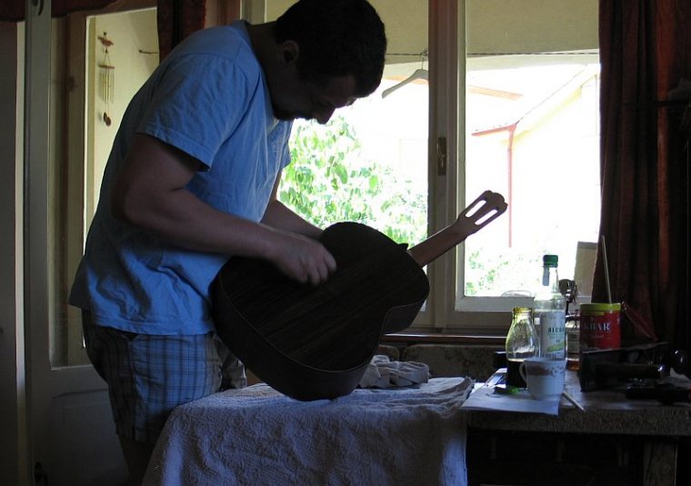 N-am avut niciodată privilegiul de a sta pe lângă un lutier, deşi tare mult mi-am dorit asta! Îmi amintesc doar de ziua în care, după ce mi-a fost făcut cadou un double-six Ibanez şi o doză Woody Seymour Duncan, am mers cu ele la un meşter să-mi monteze acea doză. Credeam că va fi simplu, o gaură, câţiva centimetri de cablu… Am stat 6 ore lângă acel meşter până a poziţionat-o în aşa fel încât să nu afecteze deloc calităţile instrumentului şi să obţină maximul posibil din calităţile de amplificare ale dozei (de altfel una excelent făcută, din lemn, nu metalică!). Şi mă gândeam atunci câtă dragoste (nu doar muncă) stă in spatele multelor ore de „naştere” (nu fabricare) a unui instrument. Fascinant şi de admirat! Păcat că după aceea mai apar şi dintre aceia ca mine care chinuie aceste instrumente! 😀