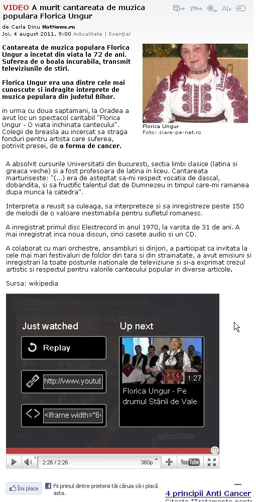 „Astăzi a murit Florica Ungur, “fii primul dintre prietenii tăi căruia să îi placă asta”