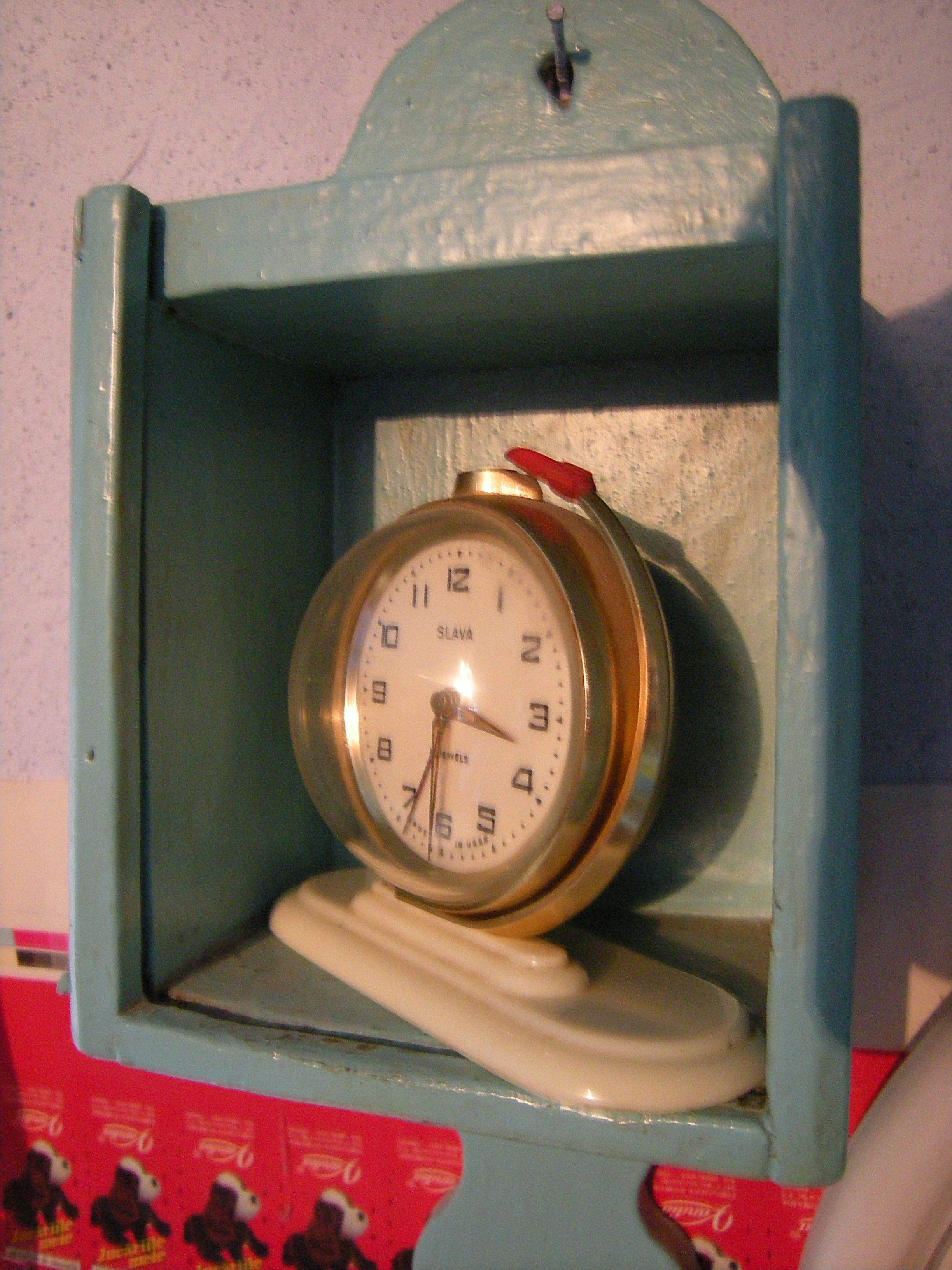 M-am aruncat în trecut spre ceasul Slava. Unul asemenea m-a trezit în primii ani de şcoală. Cutia în care este aşezat, ca o boxă a acuzatului, este cea care mă aruncă şi mai departe spre anii 60, pe cînd ceasurile erau doar în casele ceferiştilor, păstrate la mare cinste.