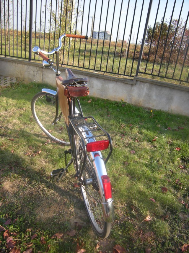 Este exact așa cum am dorit! Dacă nu este Tohan, este din zonă, este neagră de la distanță, verde închis, una dintre culorile mele favorite, fără viteze, doar cu frînă torpedo pe contră, roate de 28, cadru mare, altfel nu ar fi încăput geanta, este un cadru de 60 cm, coarne rotunde, aduse spre ciclist, cadru bărbătesc, șaua de piele…. încă mai caut o sonerie mai deosebită, poate îmi trimite cineva chiar una de Tohan sau de Ukraină și … foarte important… îm trebuie o pompă nichelată din aceea clasică.