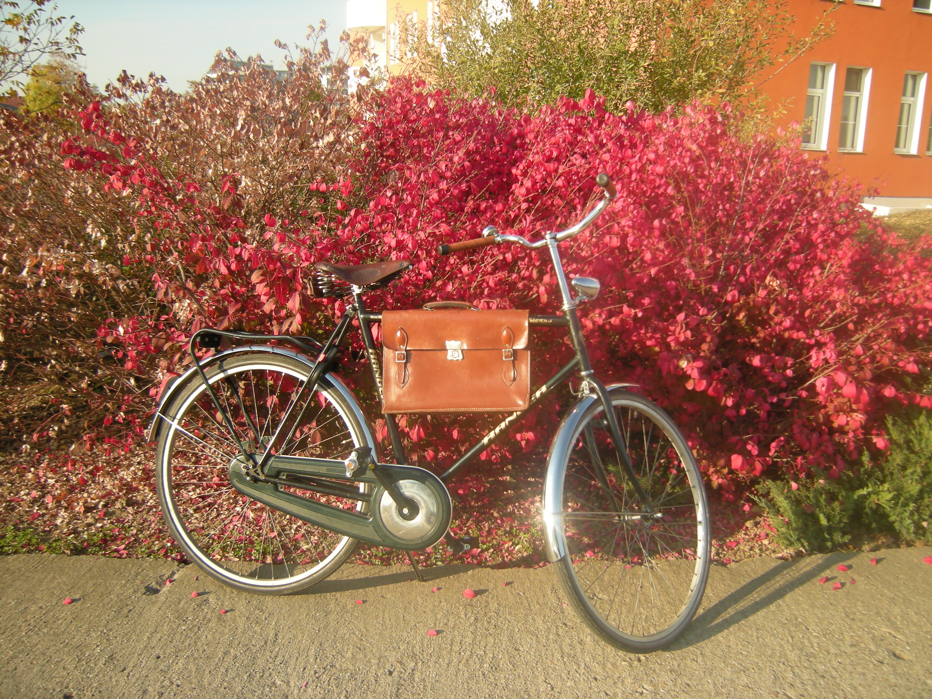 MĂCAR un element de la bicicletele lui Nenea Florea…. Da, știu că geanta era neagră, și bicicleta, admite și tu un pic de simbolistică 🙂