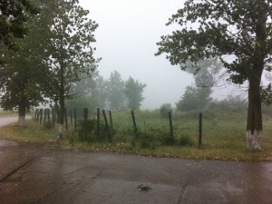 A devenit intre timp o ruina, parte din baza este manastire. Acolo ne a prins ploaia. Ne am adapostit in cladirea fostei porti de la pista. A plouat spreiat, puternic, rece.