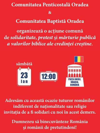 Deși nu voi putea lua parte la acțiunea de sîmbătă, din pricina unor angajamente cu mult înainte acordate, îmi încurajez prietenii, studenții, apropiații să participe la manifestația în favoarea valorilor tradiționale biblice în privința familiei de sîmbătă de la Oradea.