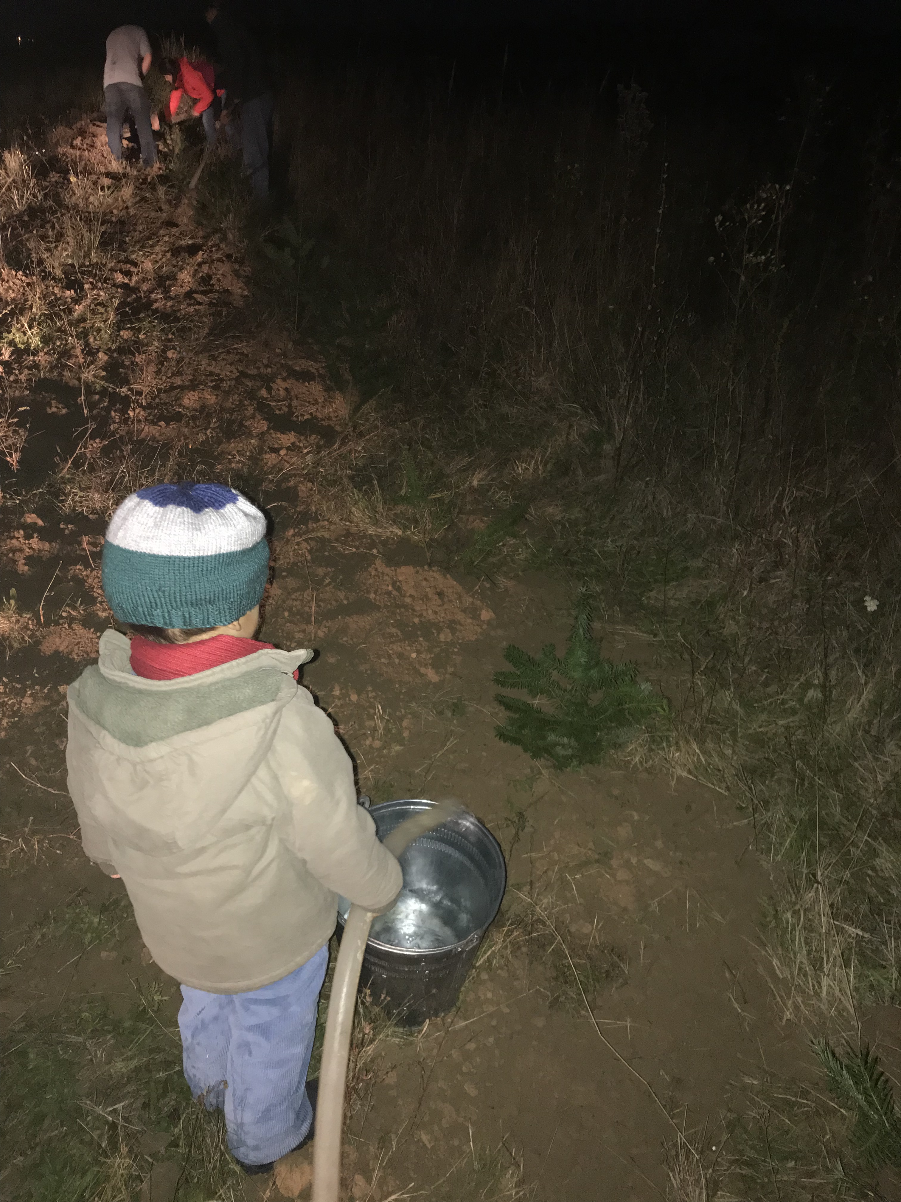 Noah a fost mai harnic decît mi-aș fi închipuit. A tras pămîntul la loc, a ținut furtunul cu răbdare în dreptul fiecăruia dintre cei 30 de pui de Douglas.