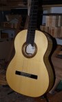 Traditional bracing, Austrian spruce soundboard with Romanian maple body Brazilian rosewood bridge, African Blackwood fingerboard and headplate Spanish cedar neck, Gotoh Deluxe tuners. ? I’m very happy with the sound of this…