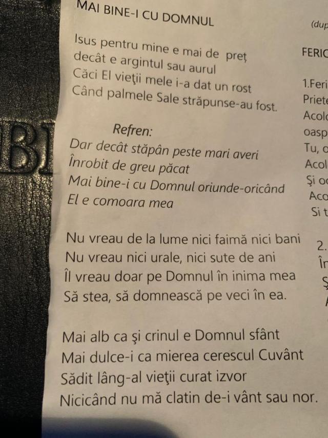 Zilele acestea, la capela Hospice, am dat peste acest cîntec. L-am cîntat alături de colegi și mi-a rămas în minte. Dr. Beni Paul mi-a trimis versurile în limba română.